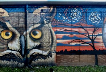 Hattiesburg in Motion honors transportation in the Hub City then and now. Bird’s design is interactive, highlighting the progression of transportation and industrialization in Hattiesburg. It features elements such as trains, bridges, buses, planes, and helicopters as well as historical nods such as an ox pulling wagons of lumber and early construction seen in downtown’s brick structures. Each sidewalk is painted to allow pedestrians to follow along the winding path of a road or hop between painted railroad lines.